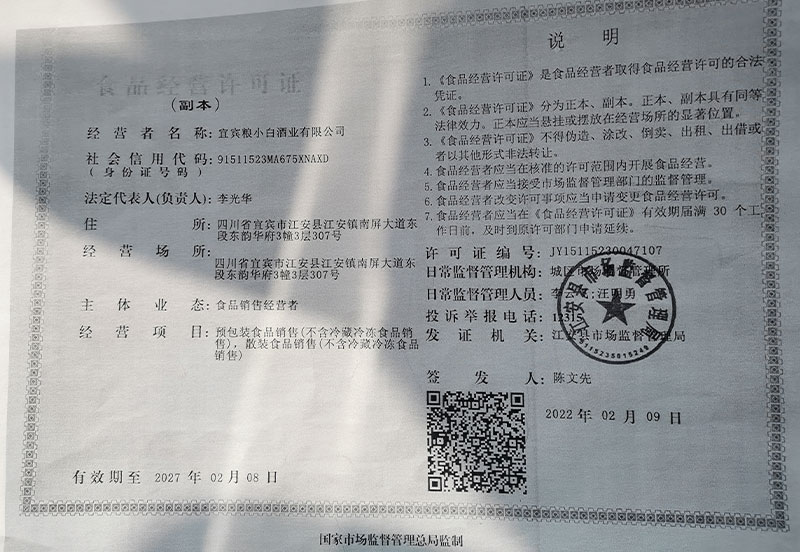 宜宾粮小白酒业有限公司坐落于有着四千多年酿酒史的世界十大烈酒产区之一、万里长江第一城、“中国白酒金三角”产区“中国酒都”宜宾市东大门江安县。这里自然环境优越,生态得天独厚,生物丰富多样,特别适宜酿酒微生物的繁殖生息,被联合国科教文及粮农组织誉为“在地球同纬度上最适合酿造优质纯正蒸馏白酒的地区”,使得为酿造五粮浓香型白酒提供了不可复制的先天条件。公司现已发展成为宜宾市五粮浓香型白酒的重点生产企业,主营浓香型白酒、清香型白酒、酱香型白酒,注册品牌为粮小白®、优府川酒®、优府酒坊®、梦亲郎®、战悦®系列酒。